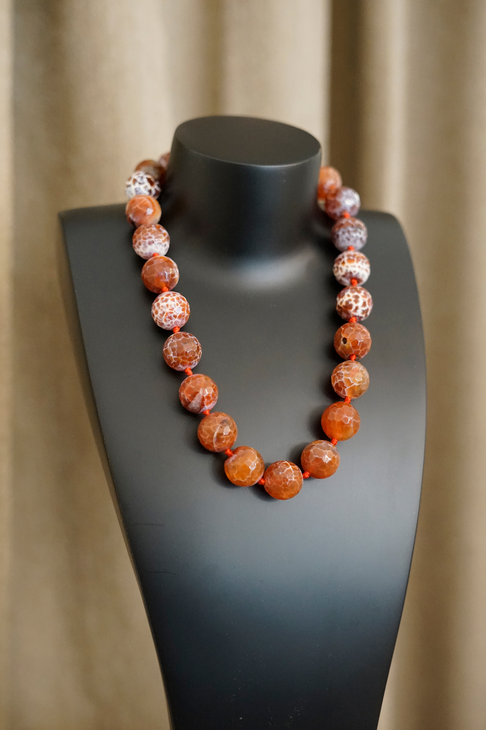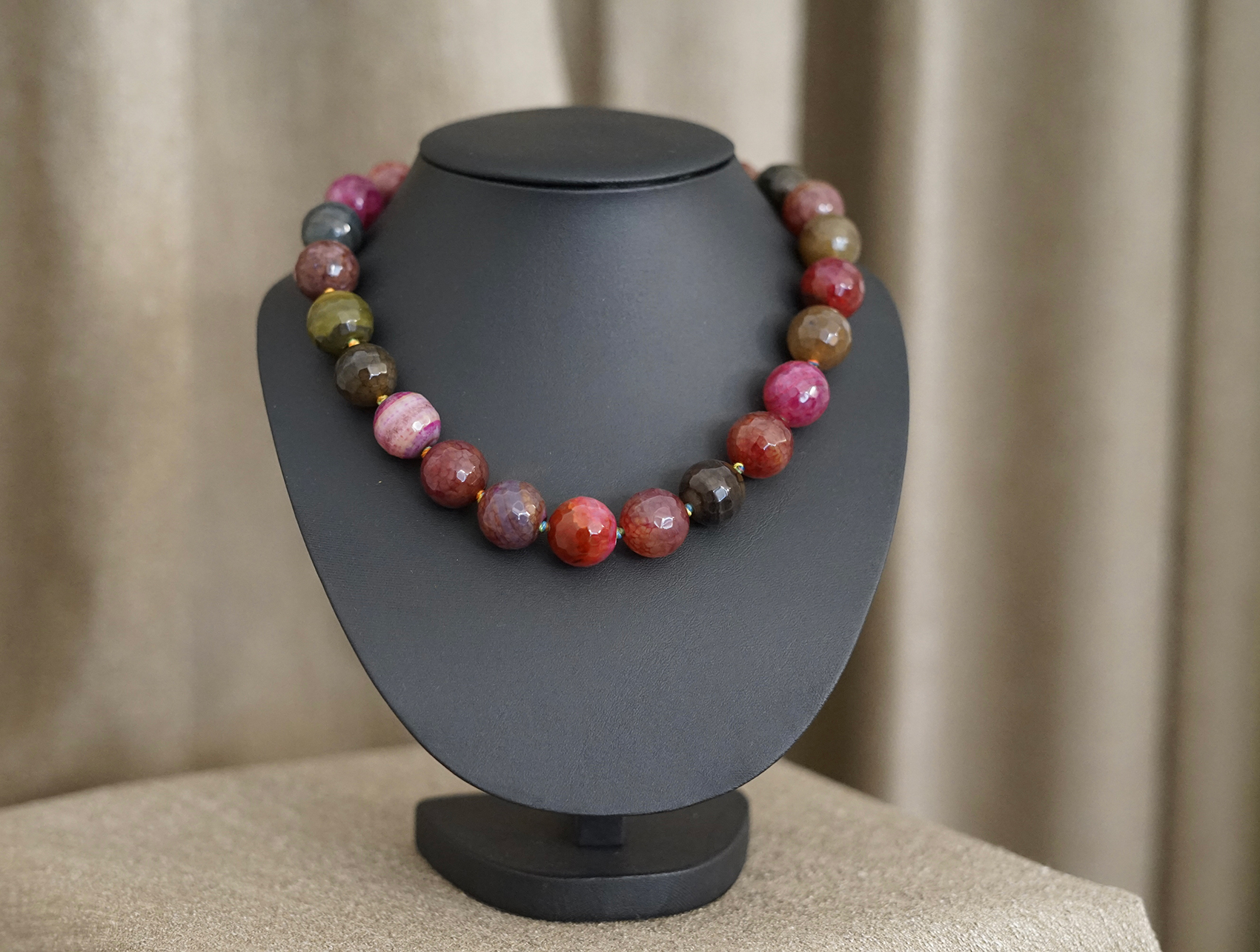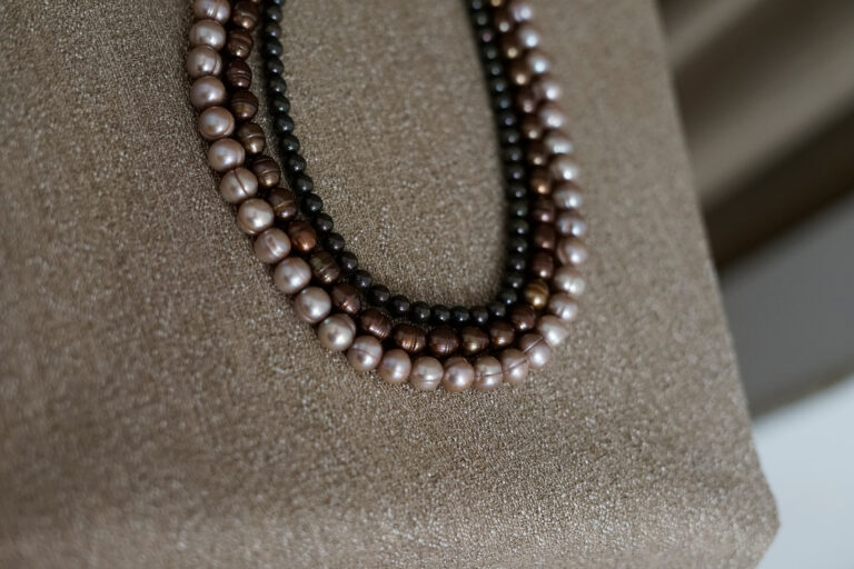 Bei häufig getragenen Ketten empfehlen wir regelmäßige Kontrollen; zeigen Faden und Knoten Abnutzung oder verlängerten Abstand, ziehen wir neu auf – sicher und formstabil.