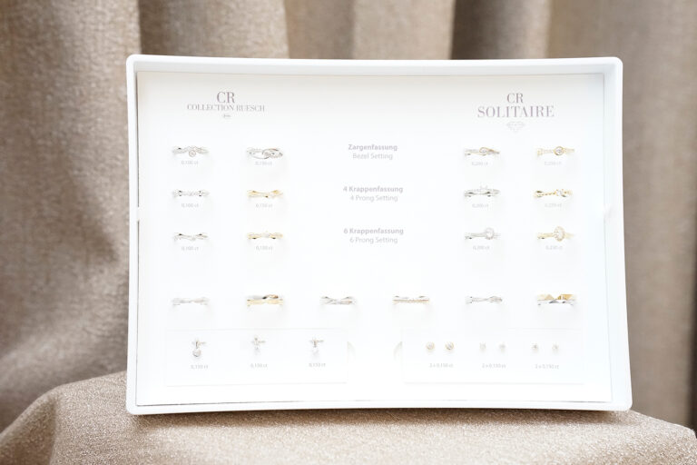 Wir beginnen mit Stil, Alltag und Budget, zeigen passende Modelle und Muster am Finger und erklären Materialien, Profile sowie – bei Verlobungsringen – Diamantoptionen. Danach erhalten Sie ein transparentes Angebot mit realistischer Zeitschiene.