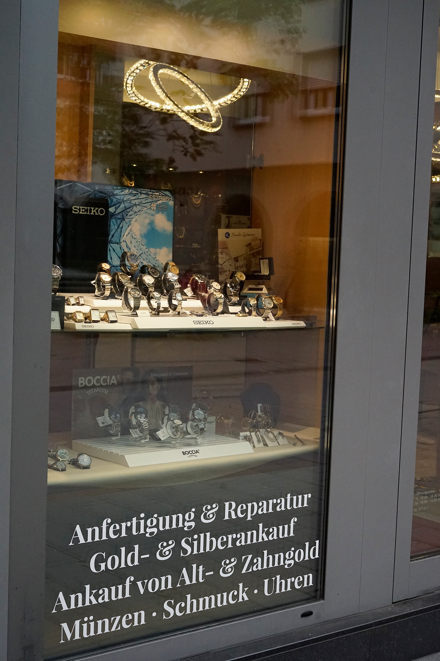 Ein persönlicher Besuch sagt mehr als tausend Worte. In unserer Filiale in der Kirchbrunnenstraße 19, mitten in Heilbronn, können Sie Schmuckstücke hautnah erleben, Uhren anprobieren und sich inspirieren lassen. Wir nehmen uns Zeit für Sie – mit einer Beratung, die genauso individuell ist wie Sie selbst.
